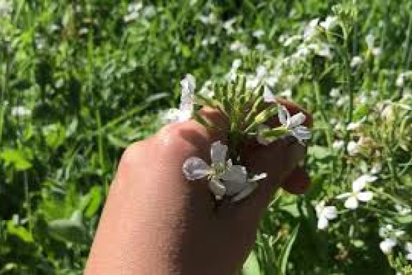 Zev: I’m admiring this cover crop that Eli put down with veggie ladies. And Daikon’s flowering with all of their, so many insects, bumblebees and honeybees and little parasitic wasps and stuff, into their...