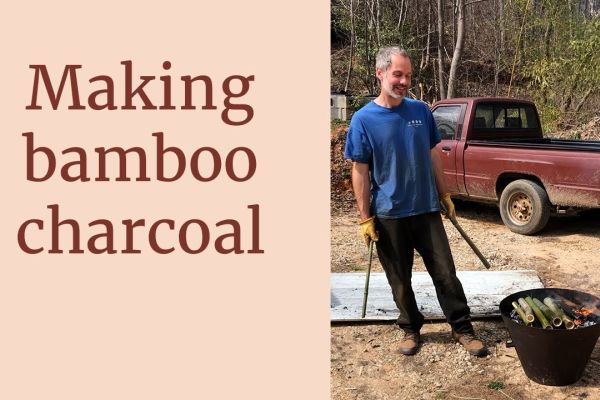 Dimitri: We’re at Earthaven Ecovillage with Zev Friedman in the Hut Hamlet neighborhood. We are now watering this char that’s made from bamboo in this Kon-tiki.