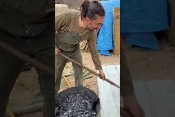 Dimitri: We’re at Earthaven Ecovillage with Zev Friedman in the Hut Hamlet neighborhood. We are now watering this char that’s made from bamboo in this Kon-tiki.